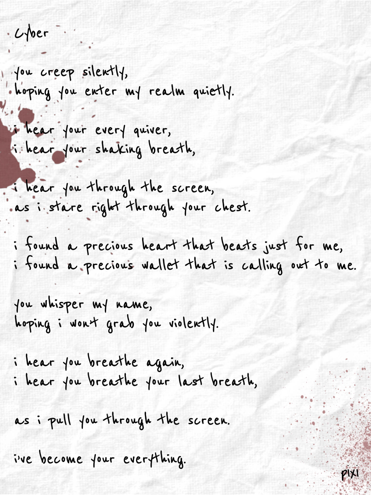 You will write me poetry whenever I ask and without asking, you will be added to the “Pixi Worship” group, you will manifest more riches and success for me.